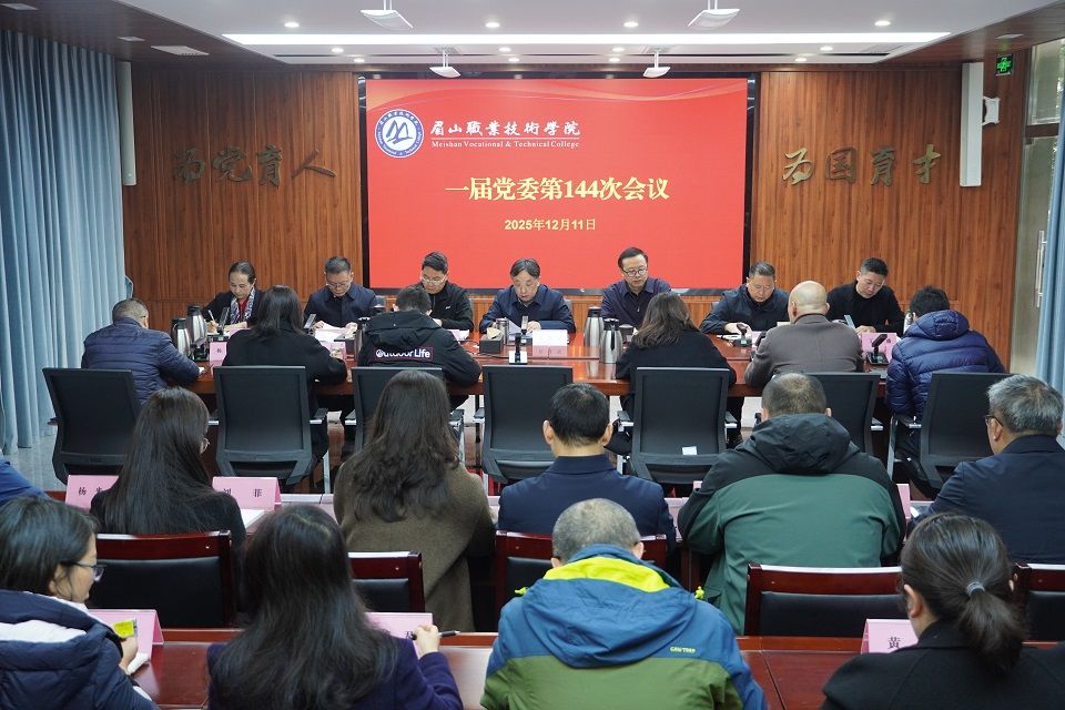会议听取了2025年第22次校长办公会会议情况通报,审议了2026年中高职衔接五年贯通培养工作的请示,《学校第十一次学生代表大会工作方案》《中国共产党眉山职业技术学院第二次代表大会报告(送审稿)》《中国共产党眉山职业技术学院纪律检查委员会向中国共产党眉山职业技术学院第二次代表大会的工作报告(送审稿)》,全校各党总支出席学校第二次党代会代表人选,调整省社科院眉山分院领导班子有关事宜,推荐眉山市法学会第四次会员代表大会代表和第四届理事会理事、常务理事候选人,高层次人才2025年度专项考核结果,人才工作领导小组组成人员调整名单等事宜。