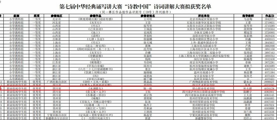 在“诗教中国”诗词讲解大赛中,技师教育学院2024级现代农业专业学生陈一枚,在教师杜火群的悉心指导下,凭借作品《水调歌头》脱颖而出,荣获职业院校学生组全国优秀奖。据悉,本次赛事中四川省仅有4所职业院校斩获该组别奖项。备赛过程中,陈一枚创新融合古典诗词意境与当代青年视角,以真挚情感与扎实功底生动阐释作品蕴含的家国情怀与人生哲思,赢得评委一致认可。