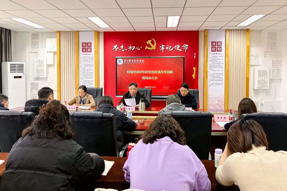 12月22日,学校在第七教学楼7303召开2025年度思政课教学指导组工作总结会暨思政课改革创新现场办公会。学校党委书记代贤军主持会议并讲话,党委副书记陈光辉,党委委员、副校长杨加琼出席会议。