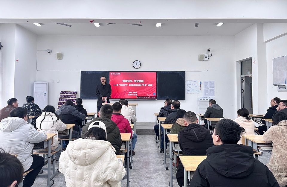 12月26日,学校党委副书记、校长刘兴勇在智能制造学院在第五教学楼5305教室,以“党建引领,专业赋能—在‘新质生产力’的职教赛道上跑出‘升本’加速度”为题,为学院全体教师讲授专题党课。