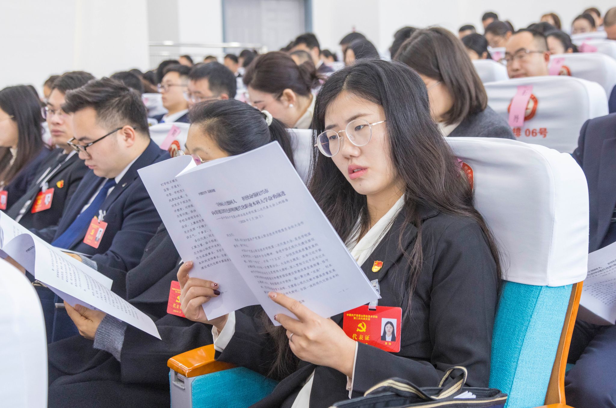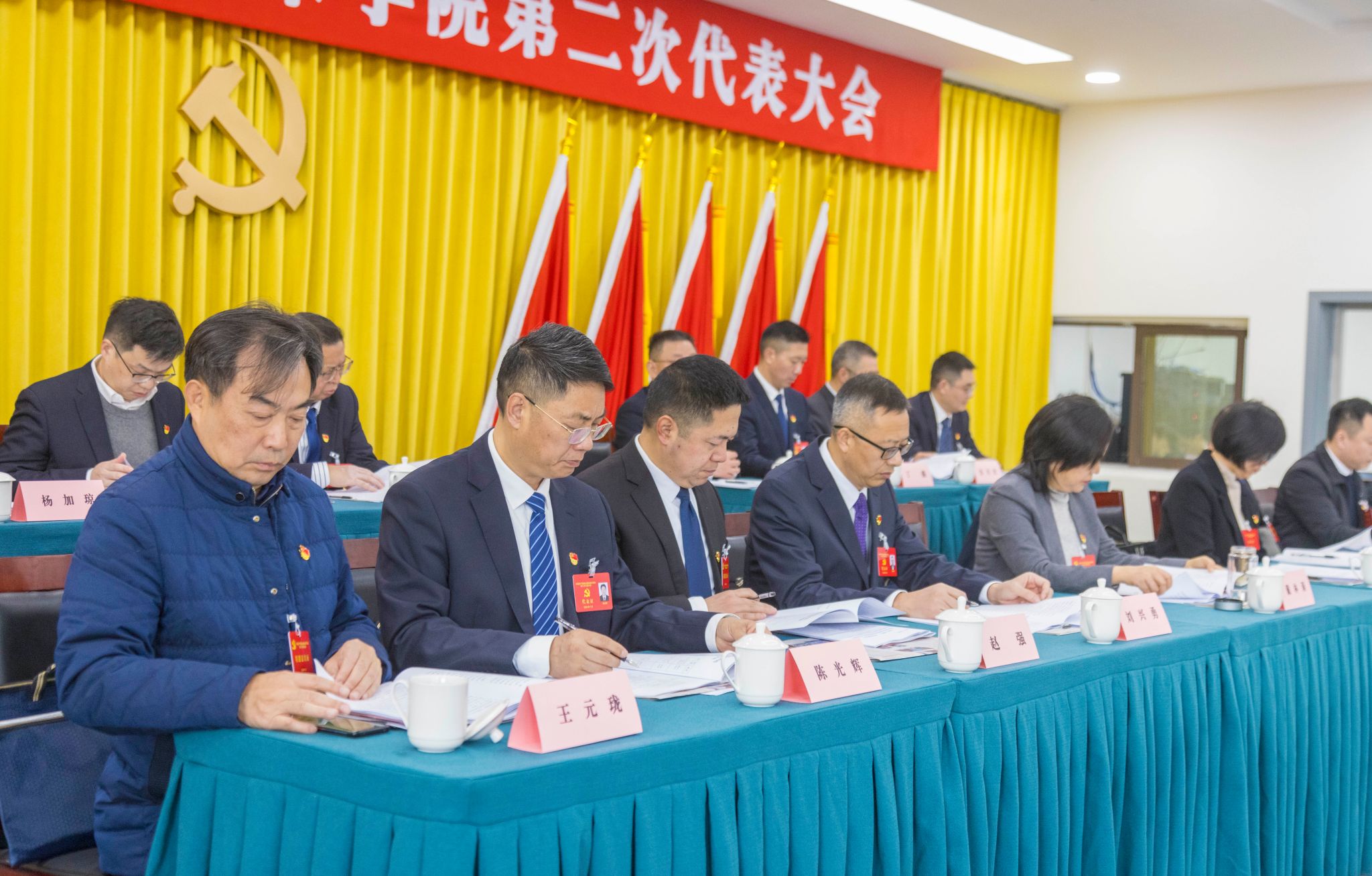 学校第二次党代会全体代表参加会议,党外人士代表、非正式代表的中层干部、教研室主任、专业带头人和八级职员列席会议。