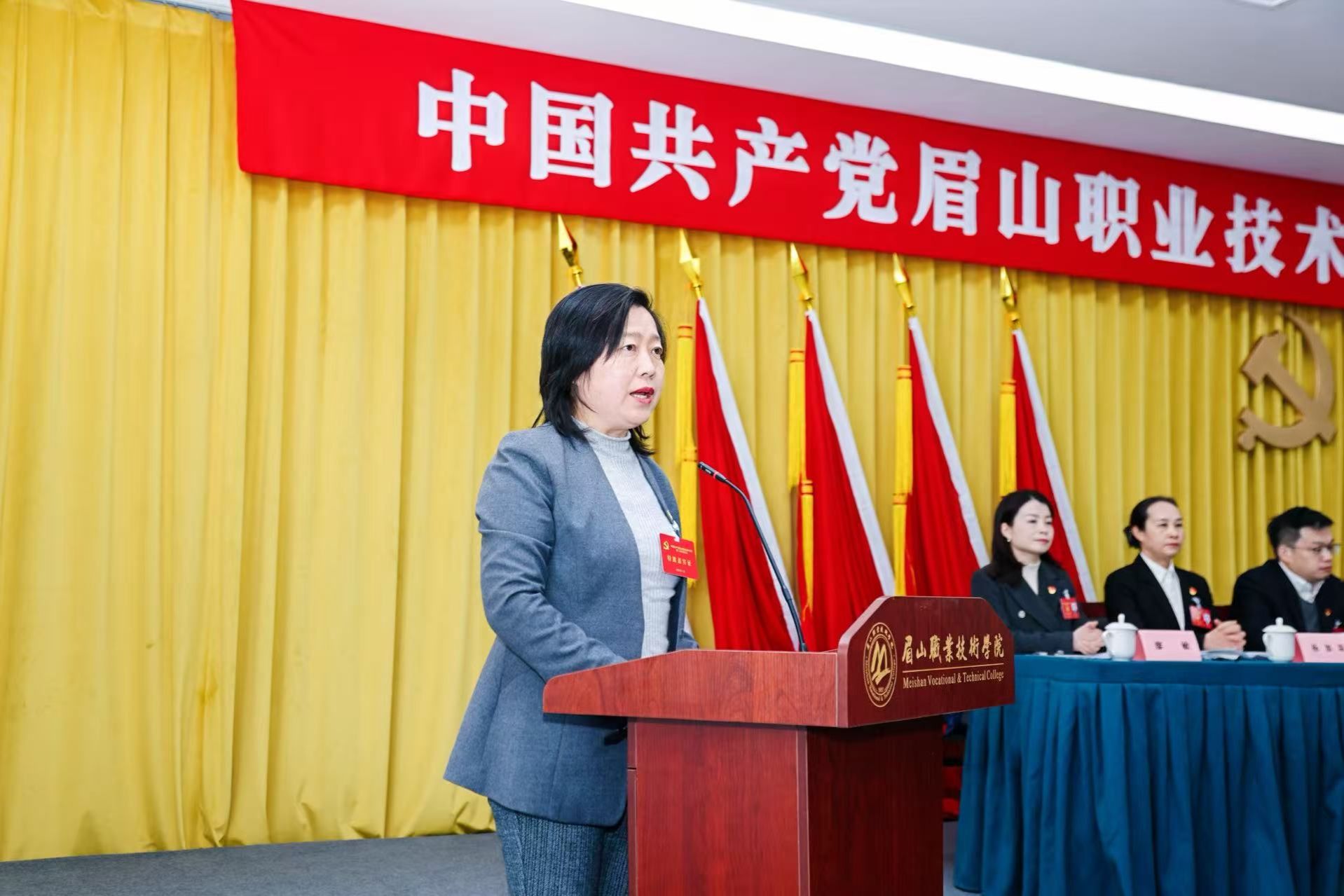 凝心聚力迎盛会,砥砺奋进新征程。1月26日,中国共产党眉山职业技术学院第二次代表大会在学校招生就业中心报告厅召开。本次大会是在学校深入贯彻党的二十届四中全会精神、奋进中国式现代化建设新征程,承续“十四五”、开局“十五五”的关键节点,召开的一次承前启后、继往开来的重要会议,为学校加快实现高质量发展、创建职业本科大学指明了方向、凝聚了力量。