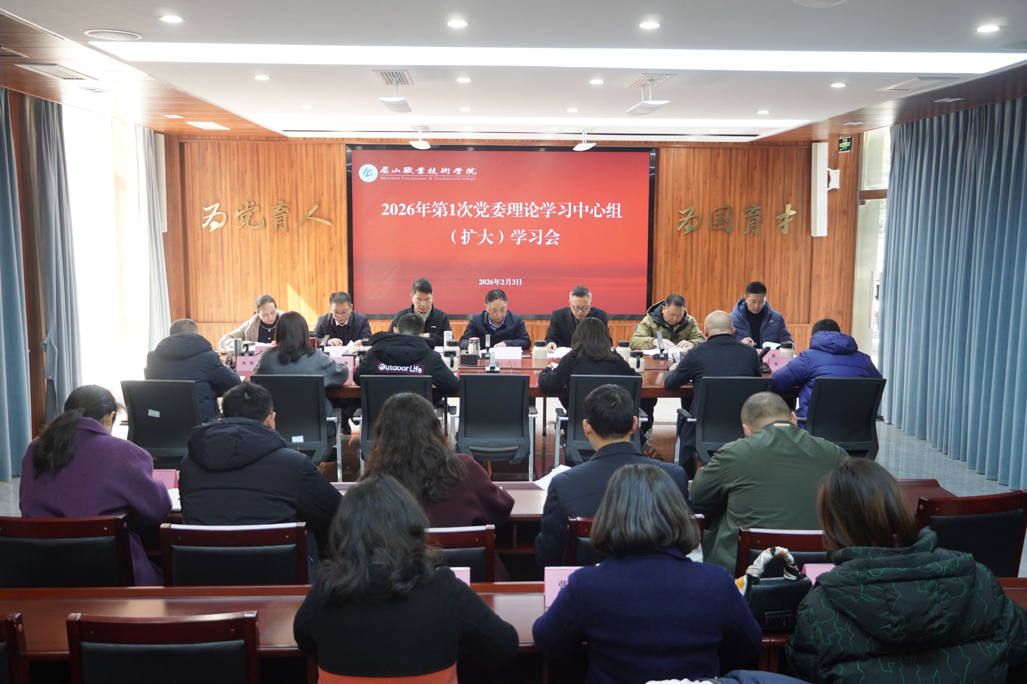 2026年2月3日,学校在行政楼一楼会议室召开2026年第1次党委理论学习中心组扩大学习会,党委书记代贤军主持会议并讲话。