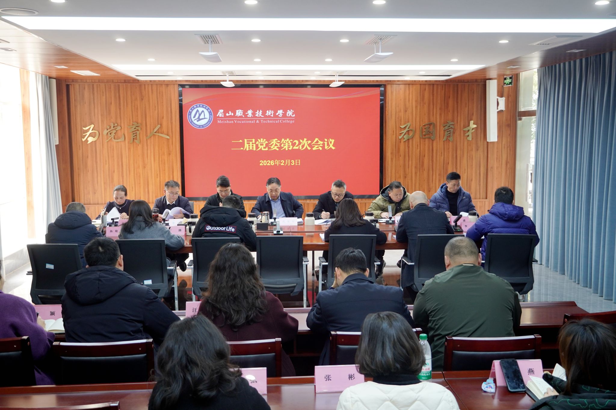 会议听取了2025年班子成员落实党风廉政建设主体责任情况报告,部署2026年工作。审议了《关于提请审议眉山职业技术学院重点项目管理办法的请示》《关于提请审议学校第二届党委班子成员分工事宜的请示》《关于提请审议2025年度党总支(党支部)书记抓党建工作述职评议考核等次的请示》等事宜。