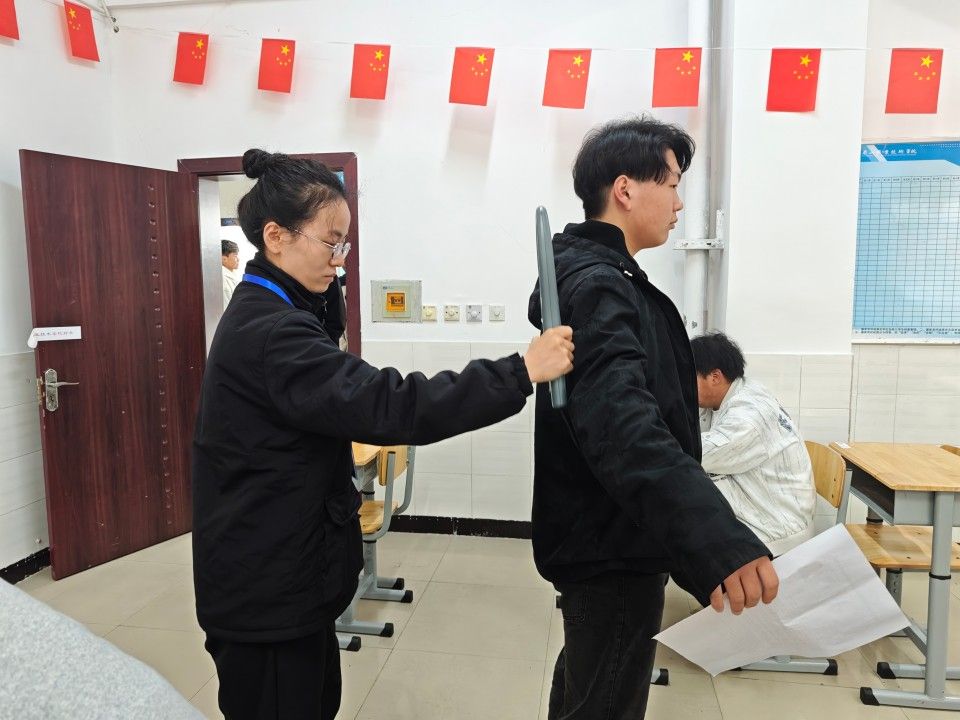 考试过程中,我校全体监考教师及考务人员认真履职尽责。他们严格按照监考流程操作,从考生入场安检、身份核验到试卷分发、回收封装,每一个细节都一丝不苟,展现了高度的专业素养和严谨的工作作风。他们以饱满的精神状态和严格的执纪态度,全力维护了考试的公平性和严肃性。