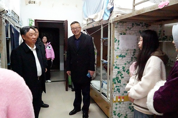 在学生宿舍,代贤军、刘兴勇一行与同学们进行了面对面的交谈,亲切询问同学们假期生活及返校感受,逐一了解大家的基本情况,并和同学们拉起家常。代贤军、刘兴勇叮嘱同学们,在校期间要提高安全防范意识,确保人身财产安全,遇到困难要第一时间联系辅导员,寻求老师的帮助。他们勉励同学们,要珍惜美好的青春时光,要认真学习专业知识,刻苦锤炼技术技能,努力成为高素质技能人才。