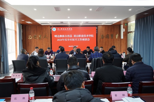 1月10日,峨边彝族自治县县委副书记龙克强,副县长舒安彬、陈果一行16人到校对接乡村振兴定点帮扶工作。党委书记代贤军,党委委员、副校长陈光辉出席座谈会。会议由党委委员、工会主席彭书君主持。