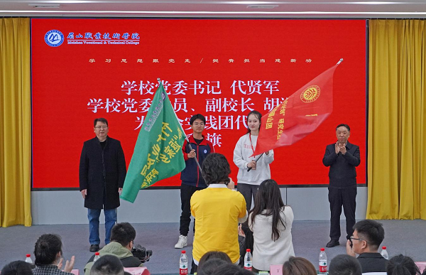 仪式上,代贤军和胡洪安还为实践团代表授旗。