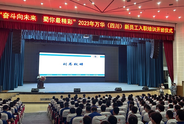 刘聁果代表公司对494名新员工加入万华(四川)表示热烈欢迎,并详细介绍了企业发展情况,分享了企业优秀员工故事,鼓励新员工在以后的工作中要敢于拼搏、直面挑战、不屈不挠;要主动学习,勇于创新,练好本事,打好基础,与企业共发展、共成长。