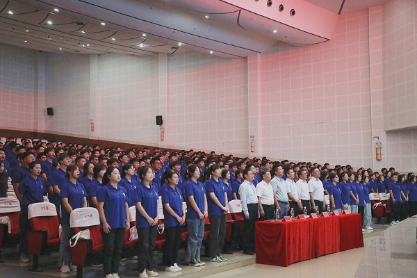 “这是一条奔向太阳的路,一路奋发图强......”,开班仪式在激情嘹亮的公司司歌《万丈光华》中拉开帷幕,全场494名万华(四川)新员工共唱公司司歌。