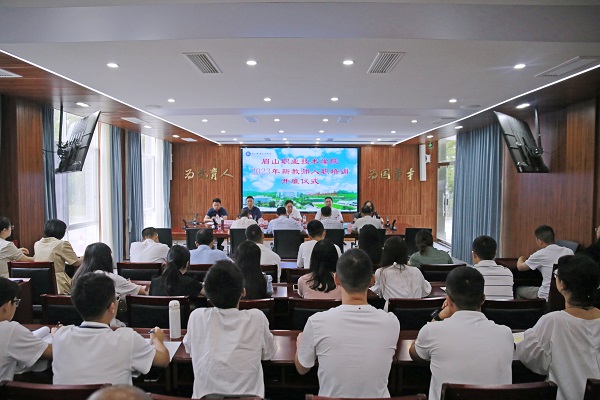 代贤军强调,全体新进教师要讲政治、担责任,全面学习把握习近平总书记关于教育的重要论述,以此更好地武装头脑、指导实践、推动工作;要有深厚情怀,新进教师要将个人理想与学校事业发展结合起来,牢固树立“家校情怀”,把眉山职业技术学院真正作为个人实现理想和成长进步的新起点,以高度的敬业态度和奉献精神,强化团结意识、凝聚奋斗合力,为学校更加美好的明天做出应有的贡献;要严守师德底线,坚守教育初心,遵守教师职业道德规范和新时代高校教师职业行为十项准则,自觉担负起立德树人的崇高使命,做到爱国守法、敬业爱生、教书育人、严谨治学、为人师表、服务社会;要推动自己转型提能,不断加强学习,练好内功,不断提升教学科研能力,尽快完成角色转换,融入学校发展;要守好底线,严于律己,不断锤炼师德修养,筑牢底线,做一名有爱心、有耐心、有责任心的教师,做好学生成长成才的引路人。