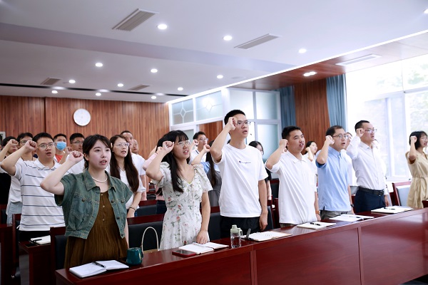 会上,组织人事部副部长林建兵带领新教师进行了入职宣誓,新教师代表李慕雪作了表态发言。