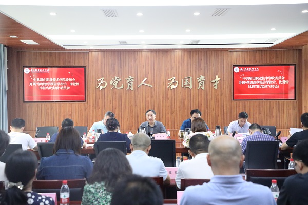 6月9日,学校在行政楼一楼会议室召开“学思想学报告学指示、比觉悟比担当比实绩”动员会,会议由党委书记代贤军主持。
