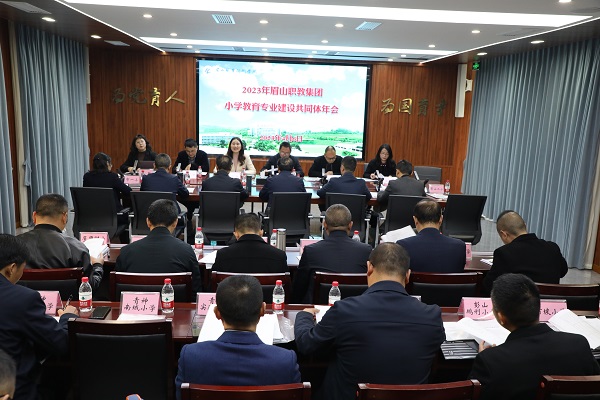 眉山职教集团师范类专业建设共同体的基地小学单位领导、教师代表,师范教育系党总支书记傅进平、副主任王其红、课程组组长及部分专业教师参加了会议。
