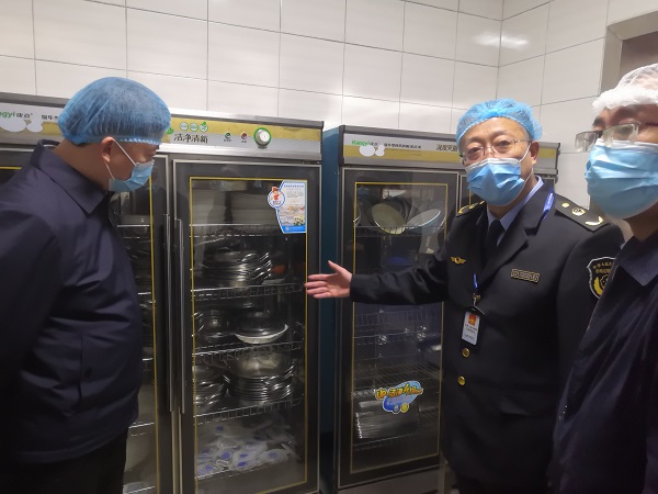 学校后勤资产处处长赵建聪及食堂相关负责人陪同检查。