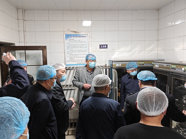 宋良勇一行先后查看了食品安全管理责任人员公示栏,观看了明厨亮灶视频,仔细询问了从业人员健康管理情况。在食堂后厨,宋良勇一行重点对食堂布局流程、食材进货台账、储存方式、索票索证、库存场所、加工间、售卖间、三防设施、留样等情况进行检查。