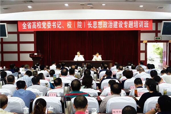 朱世宏说,,省委组织部、省委宣传部高度重视这次全省高校党委书记、校(院)长思想政治建设专题培训会议。会前,省委常委、宣传部部长甘霖,省委常委、组织部部长黄建发亲自审定培训班方案和授课内容,甘霖部长还亲自出席了开班仪式并作了讲话。培训期间,大家围绕学习领会习近平总书r记“7.26”重要讲话精神和在全国高校思想政治工作会议讲话精神,省委书记王东明在全省高校思想政治工作会议重要讲话和甘霖部长在开班仪式上的讲话精神,结合相关文件的贯彻落实,认真听取了8个专题辅导报告,并分组讨论。通过学习,大家一致认为,此次培训是一次进一步凝聚共识、统一思想的培训,一次提高认识、明确责任的培训。必须深入学习领会习近平总书记系列重要讲话精神和治国理政新理念新思想新战略,贯彻落实中央和省委的重大部署和要求,以钉钉子的精神全面推进高校思想政治建设各项工作。
