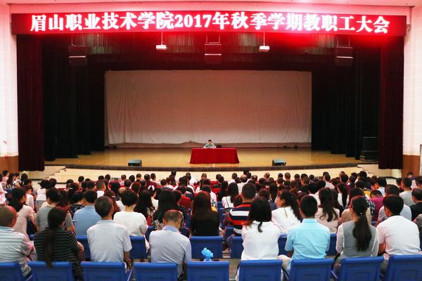 8月31日上午,学院在艺术中心召开2017年秋季学期教职工大会,总结上学期工作,安排部署本学期任务。院长徐井万主持大会并作了题为《砥砺前行不松劲 持之以恒创一流》的讲话。