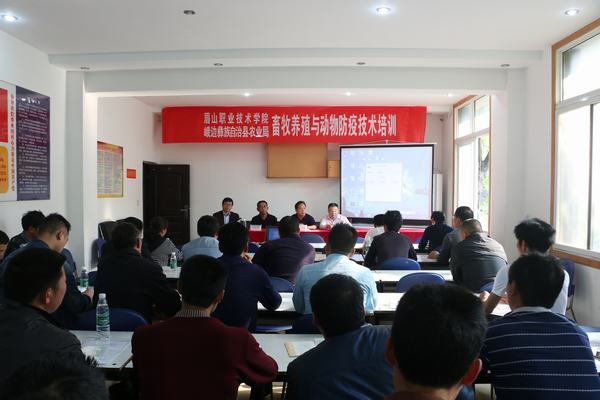 为了充分发挥畜牧养殖在脱贫攻坚中的重要作用,提高贫困乡镇动物疫病防控综合能力,实现节本增效,促进脱贫增收,5月10日-11日,学院联合峨边彝族自治县农业局举办畜牧养殖与动物防疫技术培训班。来自峨边彝族自治县19个乡镇的基层畜牧兽医技术人员和养殖大户代表进行了培训。