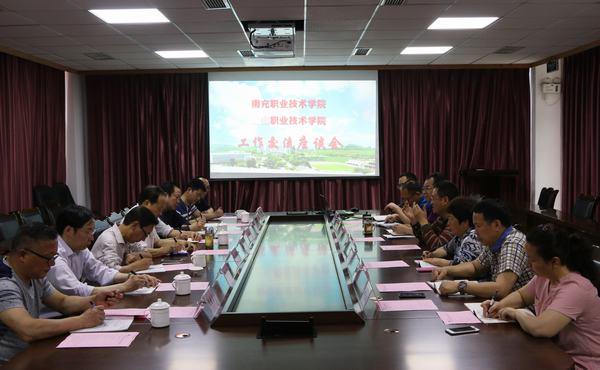 5月15日上午,南充职业技术学院党委副书记、院长陈永龙,党委副书记、纪委书记杨建平,党委委员、组织人事处处长刘志祥,工会副主席徐新民,科研处处长罗通彪,后管处处长、计财处负责人洪斌,教务处副处长张晓东,院办副主任罗海彬一行8人到我校考察交流。我校党委副书记、院长徐井万,党委副书记刘晓琼,党政办公室主任邓惠明,组织人事部部长谭学良,教务处处长罗树明,财务资产处处长卢贵礼,科技合作处副处长刘聃参加了交流会。