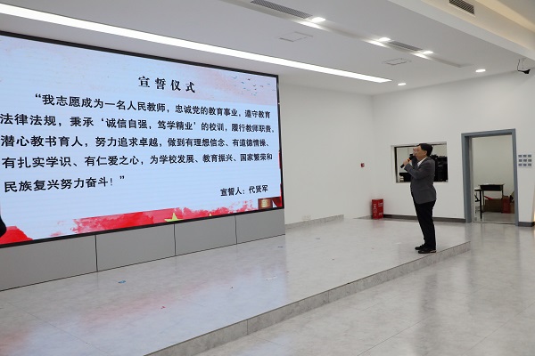 代贤军带领参会人员重温了教师誓词。代贤军代表党委向获得表彰和从教30年的教师表示祝贺,肯定了教师的先锋模范作用和学校师德师风建设的成效。他要求,全体教职员工要以先锋为榜样、以模范为方向,进一步涵养师德师风,提升教学水平;要保持正确的政治方向,认真学习贯彻落实党的二十大精神,尤其是关于教育的重要论述,不断以党的创新理论武装头脑,指导实践;要切实加强先进模范教师的宣传工作,加强立标杆、树典型工作,传承好先进模范教师优秀精神品格,为学校建设更高水平的职业技术大学凝聚强大的精神动力;要严格师德师风考核,坚决执行师德师风一票否决制,常态化、经常化、一体化开展师德师风警示教育和各类尊师重教活动,以丰富载体、鲜活案例进一步铸牢学校师德师风创建成效,以一流的师德师风引领学校高质量发展;要以立德树人为根本任务,自觉增强为党育人、为国育才的政治担当,努力培养更多德智体美劳全面发展的社会主义建设者和接班人,为社会经济发展贡献力量。