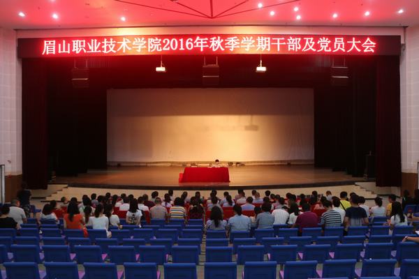 8月29日上午,学院在艺术中心召开了2016年秋季学期全体干部及党员大会。学院党委书记王元珑,党委副书记、院长徐井万,党委副书记刘晓琼,党委委员、纪委书记张献华,党委委员、副院长张望,党委委员、副院长胡洪安,党委委员、工会主席彭书君,全体党员、八级职员及以上干部参加了会议,刘晓琼主持会议。