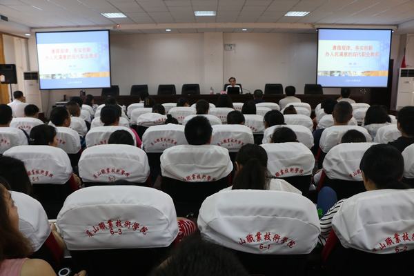 7月14日下午,四川工程职业技术学院党委副书记、副院长、省示范验收专家组成员杨跃教授应邀来我院,为全体教师进行了题为“遵循规律 务实创新 办人民满意的现代职业教育”专题讲座。