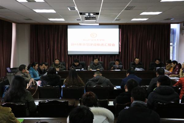 1月25日上午,学院2015年示范建设推进汇报会在行政楼底楼会议室召开,学院党委书记王元珑,党委副书记、院长徐井万,党委副书记刘晓琼,纪委书记张献华,副院长张望、工会主席胡洪安及示范专业项目组全体成员出席会议。