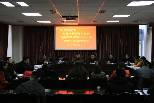 1月26日上午,学院在行政楼一楼会议室召开2016年第1次党委会、第1次院长办公会,院级领导、学院中层干部、有关部门和单位工作人员参加会议。党委书记王元珑主持党委会议, 党委副书记、院长徐井万主持院长办公会。