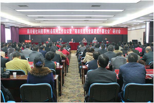 2015年11月27日,省社科院在广元旺苍召开了市(州)县院所工作会暨“精准扶贫与全面建成小康社会”研讨会,院党委书记李后强教授,副院长杨钢研究员、副院长李明泉研究员,院纪委书记向宝云研究员,广元市委副秘书长、办公室主任任利国,旺苍县委书记张尚华、市(州)县院所负责人、兼职副院副所长、职能部门负责人,以及旺苍县相关部门共计100多人参加了此次会议。