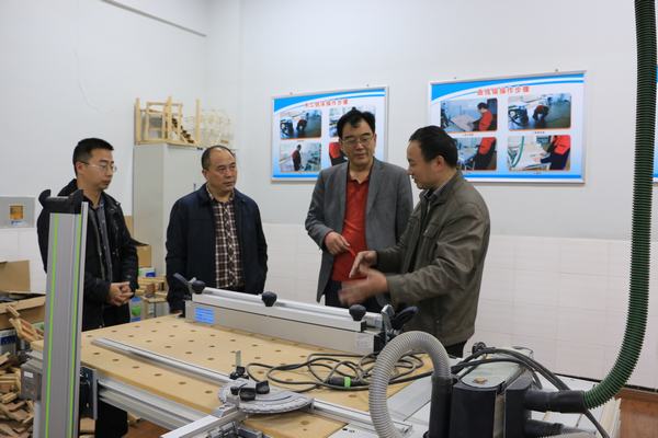 (尹万军一行参观学院实训室)