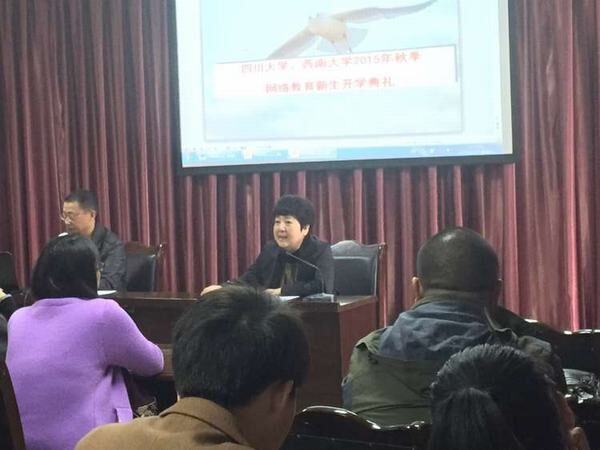 2015年11月7日上午,四川大学、西南大学2015年秋季网络教育新生开学典礼在学院行政楼底楼会议室举行,学院继续教育培训部全体人员和两所大学2015年秋季网络教育全体新生参加了会议。分管院领导、党委副书记刘晓琼出席了开学典礼。