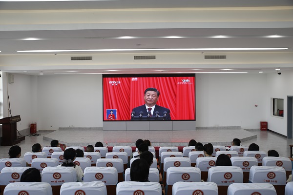 10月16日上午10时,中国共产党第二十次全国代表大会在北京人民大会堂开幕。学校党委班子成员、中层以上领导干部在行政楼一楼会议室集中收看开幕会盛况,各党总支组织各班师生收看大会盛况。