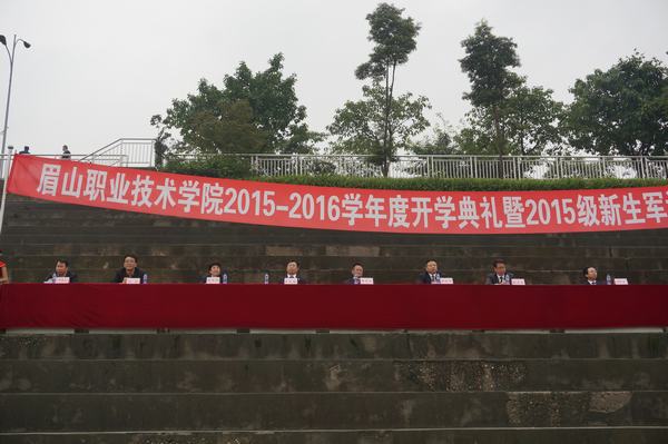 9月18日上午,眉山职业技术学院2015-2016学年度开学典礼在学院球场隆重举行。学院党委书记王元珑、党委副书记、院长徐井万、纪委书记张献华、副院长张望、工会主席胡洪安等领导出席了典礼,全院师生参加了此次典礼,党委副书记刘晓琼主持会议。