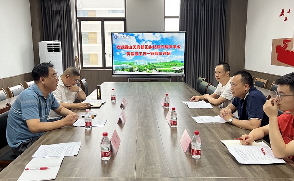 眉山天府新区乡村振兴服务中心陈亮、唐伟,农业技术系副主任杨俊、专任教师陈航参加交流活动。