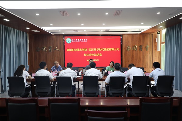 6月2日,学校与四川天华时代锂能有限公司在行政楼一楼会议室举行校企合作洽谈会,学校党委书记代贤军,四川天华时代锂能有限公司人力行政总监江宏亮出席会议。