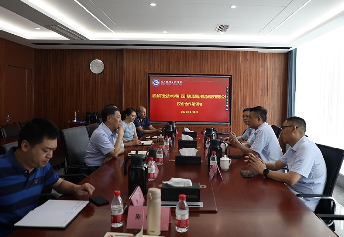 四川锦源晟新能源科技有限公司行政人事部部长宋子杰对企业基本情况、发展过程、企业优势、福利待遇和发展平台、企业人才需求情况等作了详细介绍,总经理傅强就与眉山职院的合作提出相应构想,双方达成初步合作意向。
