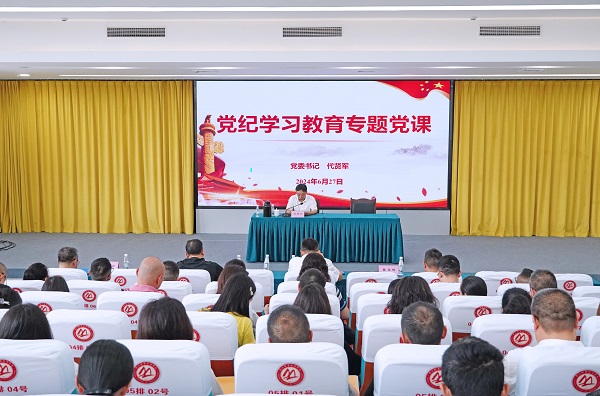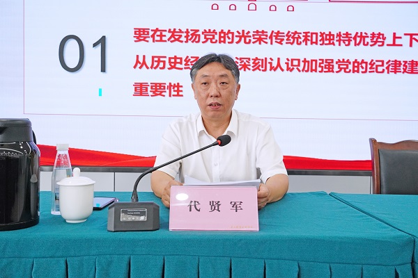 代贤军指出,自中国共产党成立以来,党的纪律逐步形成并不断健全,纪律建设日益发展并不断深入,成为党从小到大、从弱到强、不断从胜利走向胜利的坚强保障。2023年12月,党中央新修订了《中国共产党纪律处分条例》(以下简称《条例》)。2024年4月,党中央同意以学习贯彻新修订的纪律处分条例为契机,在全党开展党纪学习教育。这次党纪学习教育明确提出要把重点聚焦到学习领会《条例》上,我们要将思想和行动统一到党中央决策部署上来,以饱满的政治热情、高度的政治自觉开展好党纪学习教育,切实做到抓要领、明要点、悟要义、知要害、守要处,增强政治定力、纪律定力、道德定力、抵腐定力,始终做到忠诚干净担当。