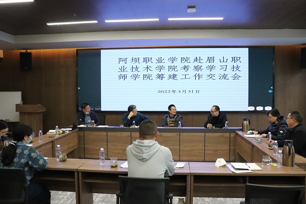 3月31日,阿坝职业学院院长柴继贵一行7人莅临我校考察学习技师学院筹建工作。学校党委副书记、院长徐井万出席交流会。