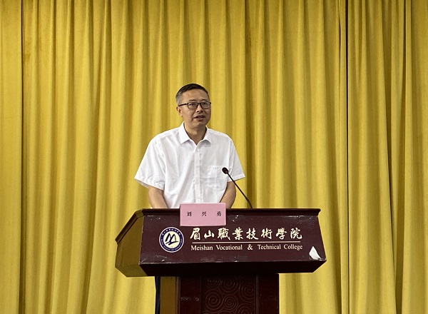 我校党委副书记、院长刘兴勇致辞。他表示,去年10月,学院联合参建院校,成功申报并立项省级现代农业技术专业教学资源库。立项以来,参建学院聚焦服务助力更高水平“天府粮仓”示范区建设,以现代农业技术专业为核心,服务作物生产与经营管理、园艺技术、植物保护与检疫技术、种子生产与经营等专业,将生产上的新技术、新标准及时纳入并重构课程教学内容,构建对接产业岗位人才需求的现代农业技术专业课程体系,不断推动教学资源库建设走深走实。