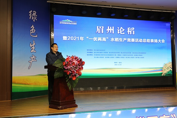 12月24日,由眉山市东坡区人民政府、眉山职业技术学院、眉山市农业农村局和四川农业大学水稻研究所联合主办的眉州论稻暨2021年“一优两高”水稻生产竞赛活动总结表扬大会在眉山市东坡区岷江现代农业示范园区举行,学校党委副书记、院长徐井万出席会议并讲话。