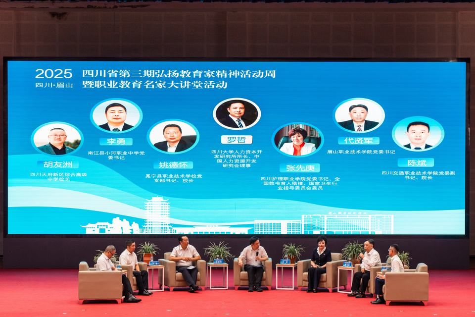 9月15日,以“弘扬教育家精神,共筑职业教育强国梦”为主题的“第三期弘扬教育家精神活动周暨职业教育名家大讲堂”在学校开幕。活动由四川省教师发展中心、四川省教育融媒体中心(四川教育电视台)主办,眉山市教育和体育局、眉山职业技术学院承办,旨在深入贯彻落实国家《教育强国建设规划纲要(2024—2035年)》和《关于弘扬教育家精神加强新时代高素质专业化教师队伍建设的意见》精神,推动职业教育高质量发展。