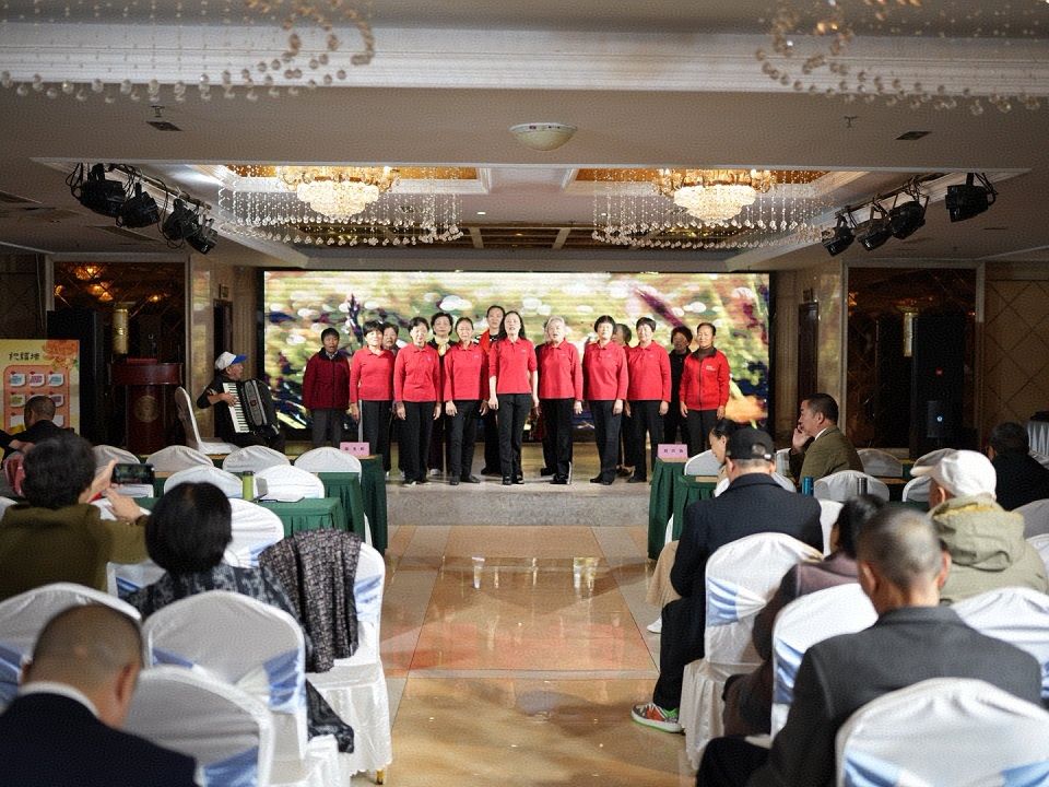 上午十点整,文艺汇演在全体离退休人员合唱《没有共产党就没有新中国》的洪亮歌声中拉开序幕。《二胡独奏:良宵》《剑舞》《太极拳表演》《口琴独奏:我爱你中国》《集体舞:九月九的酒》等十七个节目轮番上阵,精彩绝伦,赢得在场老师阵阵掌声与喝好声。学生舞蹈节目《重阳桌上的民族味》更是全场互动,不少离退休老师跟着节奏轻轻拍手,甚至起身与学生们隔空互动,现场暖意融融。
