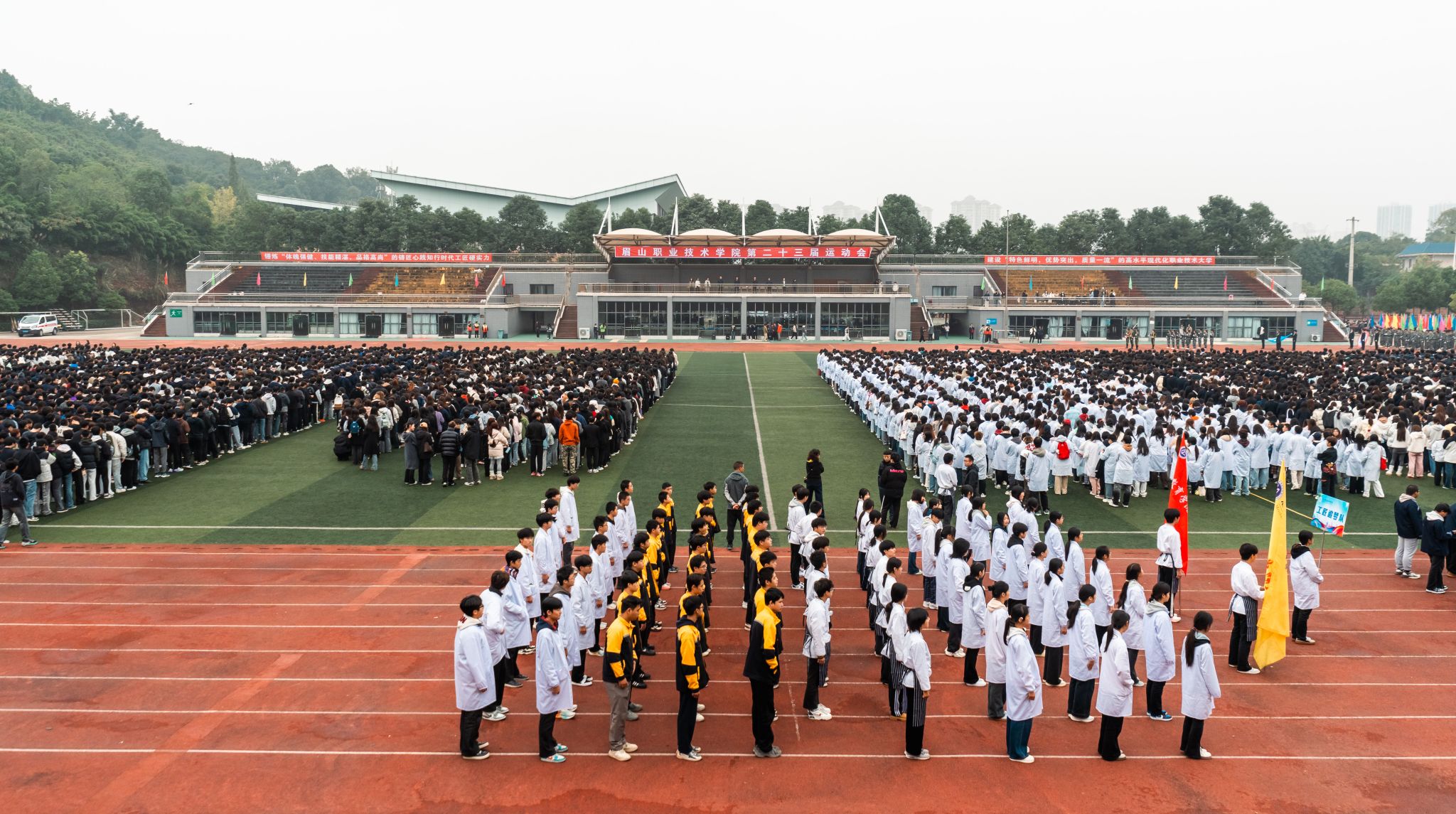在庄严的升旗仪式后,党委学生工作部部长杜宗洪代表学校向精心筹备运动会的全体工作人员表示衷心感谢,向全体运动员、裁判员致以亲切问候。他强调,运动会不仅是检验学子身体素质的赛场,更是展现校园精神风貌的舞台,号召全体运动员秉持“更高、更快、更强”的体育精神,赛出风格、赛出水平;希望裁判员公正执裁,工作人员热情服务,共同将本届运动会办成一届文明、热烈、精彩、圆满的体育盛会。运动员代表和裁判员代表分别庄严宣誓,承诺将严格遵守竞赛规则,公平竞争,公正裁判。