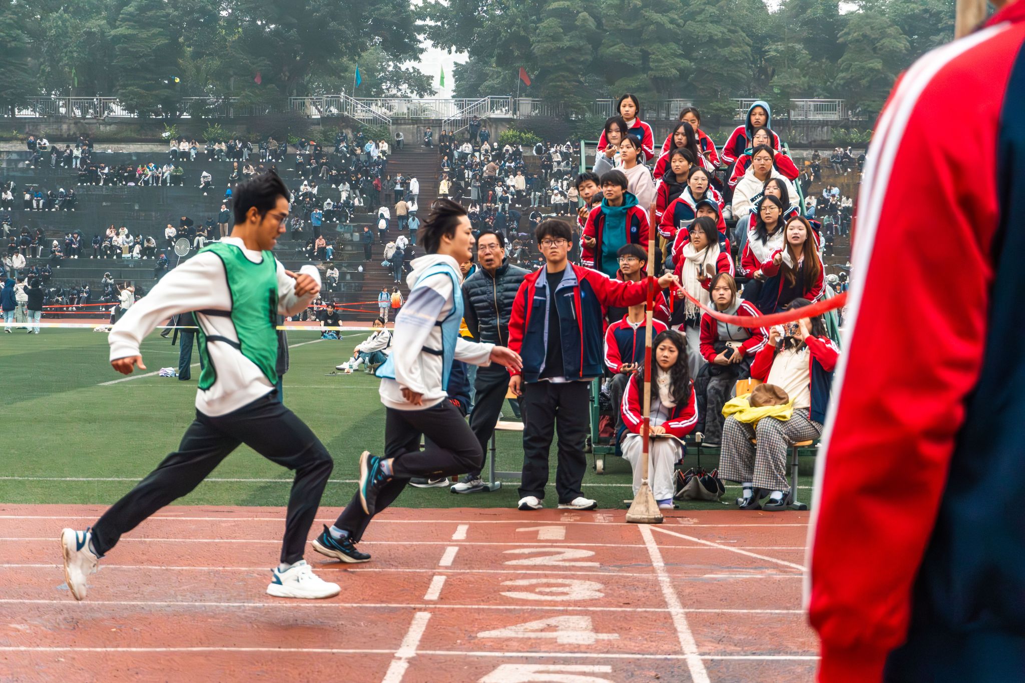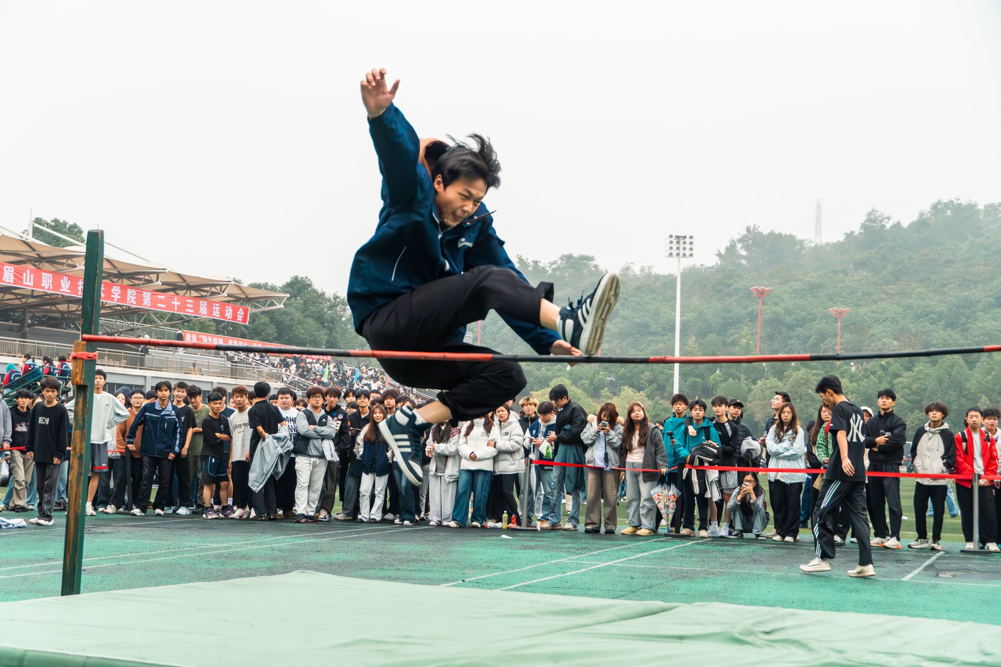 除了在赛场上拼搏的运动员,那些默默付出的身影同样构成了运动会最美的风景。裁判员们恪尽职守,精准测量,公正裁决;志愿者们穿梭在人群之中,引导秩序、提供帮助、清理场地,他们的微笑与服务是运动会顺利运行的重要保障;赛场旁的啦啦队更是激情澎湃,他们的助威声浪是运动员们最强劲的动力源泉。各班级、各学院也展现出良好的精神风貌和组织纪律性,积极投稿,为赛场增添了浓厚的文化气息。