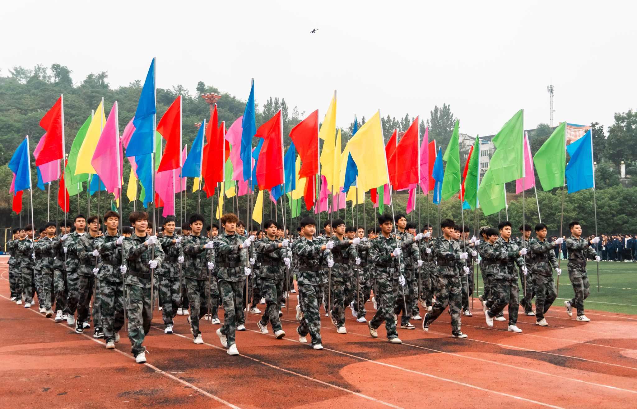 伴随着激昂的运动员进行曲,国旗护卫队,校旗、彩旗方队以及各学院方队以铿锵有力的步伐依次通过主席台。他们整齐划一的动作、独具特色的展示、嘹亮高亢的口号,充分展现了我校学子朝气蓬勃、昂扬向上的精神风貌,赢得了看台上师生们的阵阵掌声。