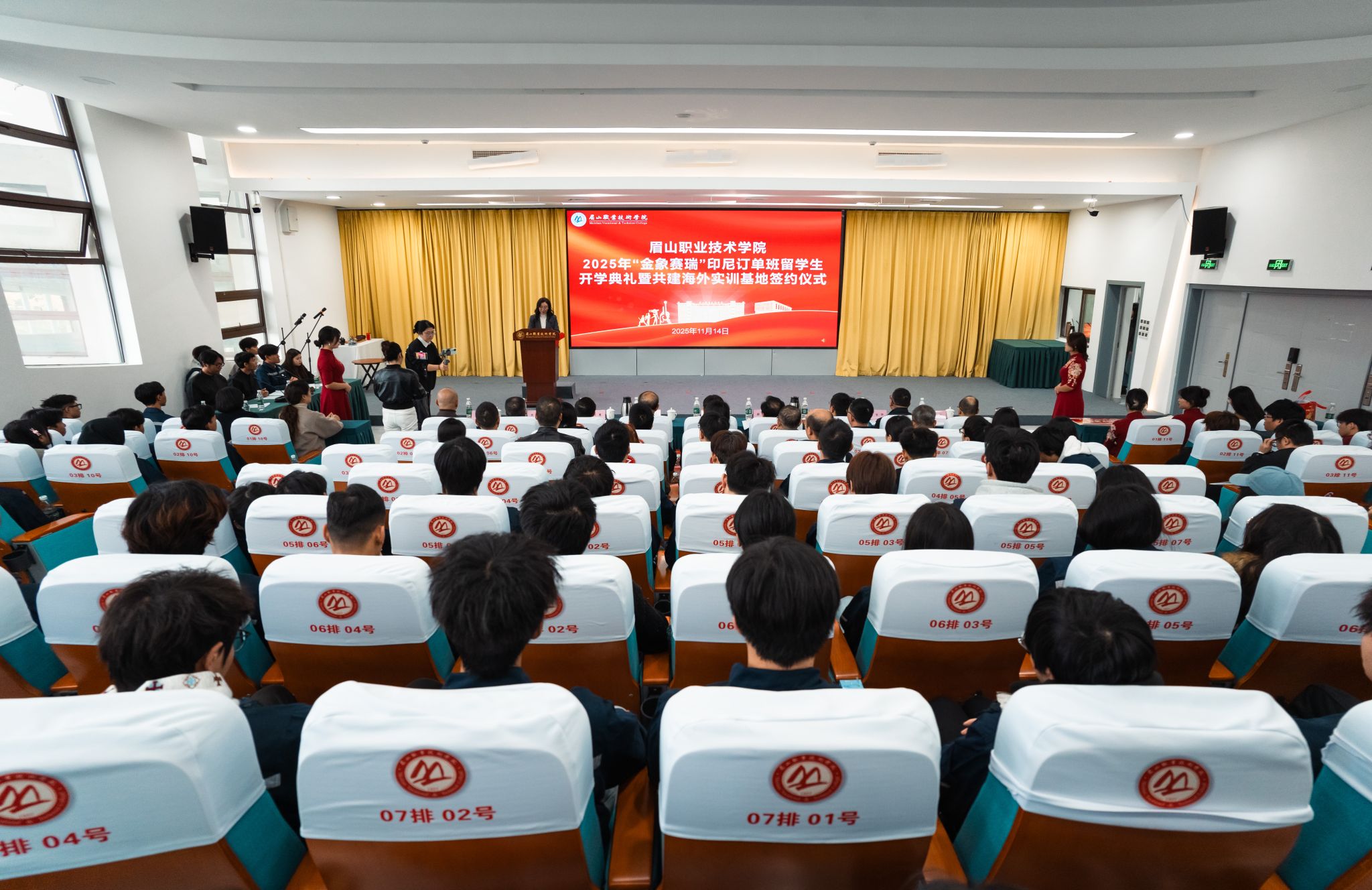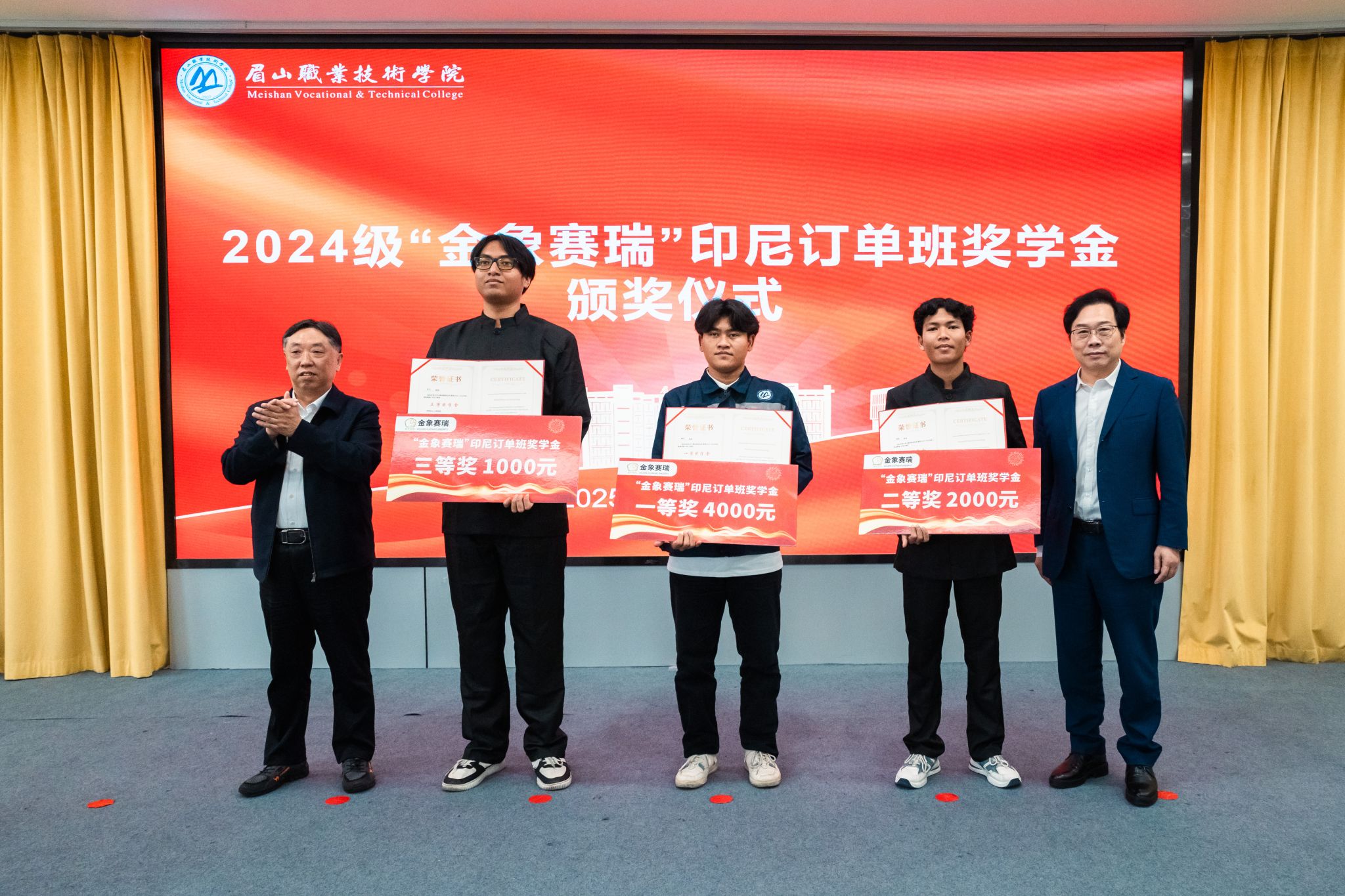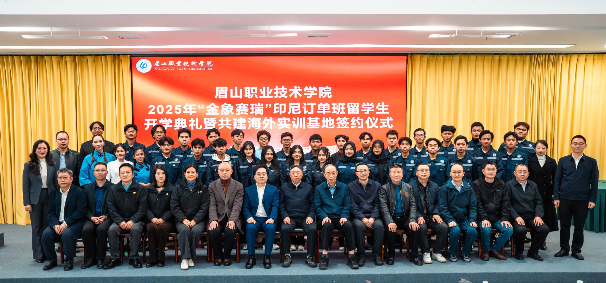 代贤军代表学校全体师生向23名新入学的印尼留学生表示欢迎,并向长期以来关心支持学校发展的金象赛瑞公司致以诚挚感谢。他在致辞中指出,眉山职业技术学院作为眉山市人民政府举办的唯一公办高校,始终牢记为党育人、为国育才的初心使命,紧扣国家“职教出海”战略部署,积极服务“一带一路”建设,持续深化产教融合、校企合作,聚焦区域与产业发展需求,致力于培养具有国际视野、产业急需的高素质技能人才。他强调,从首届订单班的成功举办到新一批留学生的到来,再到“中文+技能”海外实训基地的共建,标志着校企双方围绕“职教出海”进行的探索正不断走深走实。他寄语新生珍惜在“三苏故里”的求学时光,勤学笃行,努力成为中印尼友好交往的参与者和推动者。