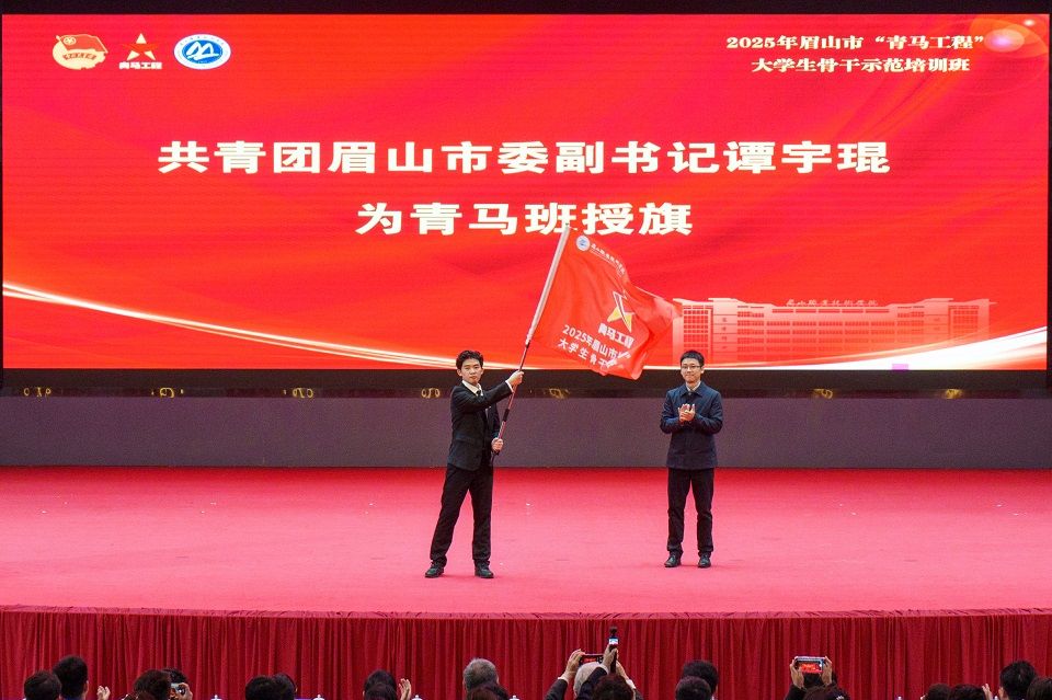 11月15日,学校在艺术中心举行2025年眉山市“青马工程”大学生骨干示范培训班开班仪式。学校党委书记代贤军,共青团眉山市委副书记谭宇琨,眉山市关心下一代工作委员会常务副主任黄跃、李为果、副主任汪明福,四川大学眉山校友会会长杜宇出席开班仪式。