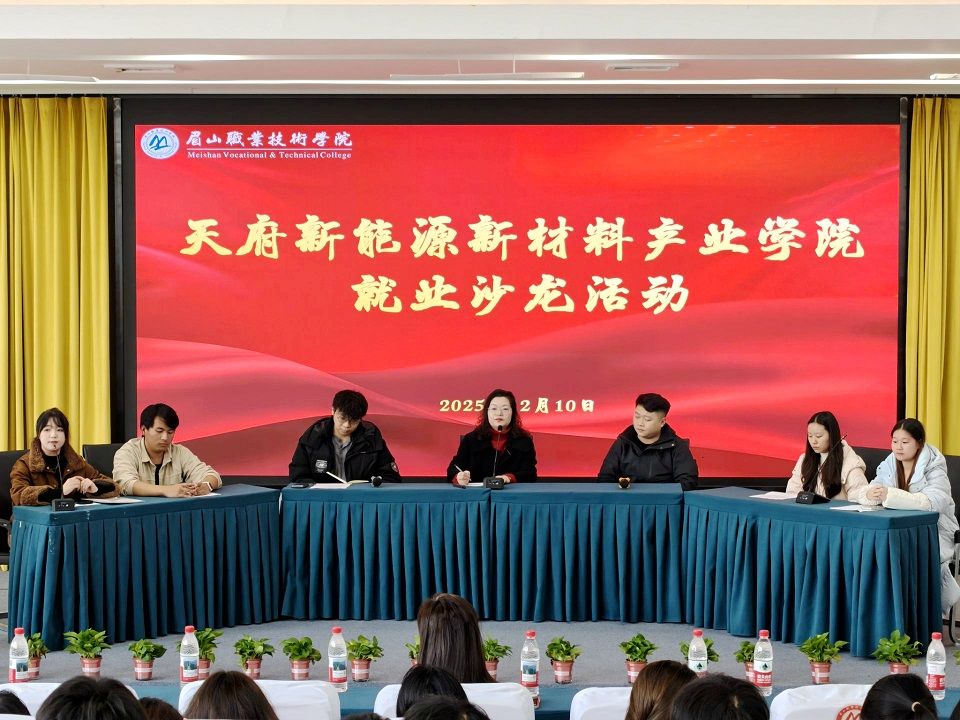 12月10日,天府新能源新材料产业学院在学校招就中心二楼会议室举办就业沙龙活动。活动由学院学工秘书罗珍主持,学院党总支副书记刘菲、中创新航科技股份有限公司四川基地人事经理林尧、人事专员陈强出席活动。