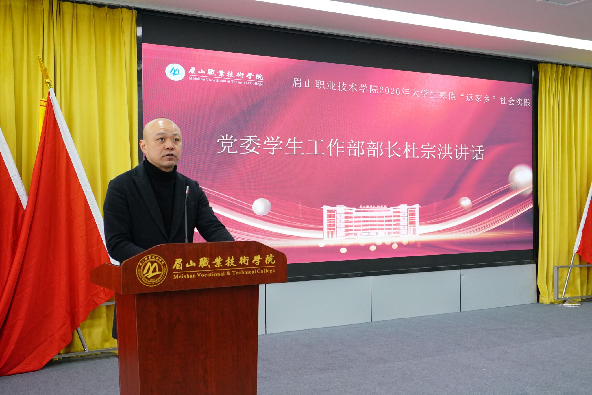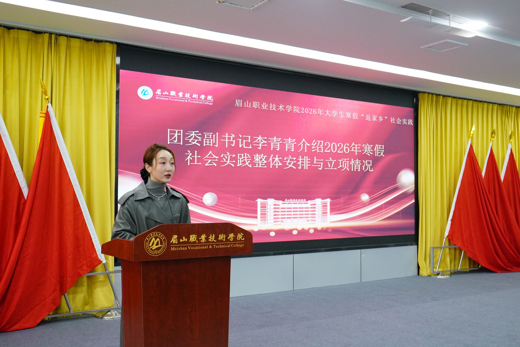 1月16日,学校2026年寒假“返家乡”社会实践出征仪式在学校招生就业中心宣讲厅举行。党委学生工作部部长杜宗洪、校团委副书记李青青、各学院团总支书记、实践团队指导教师及学生代表参加仪式。